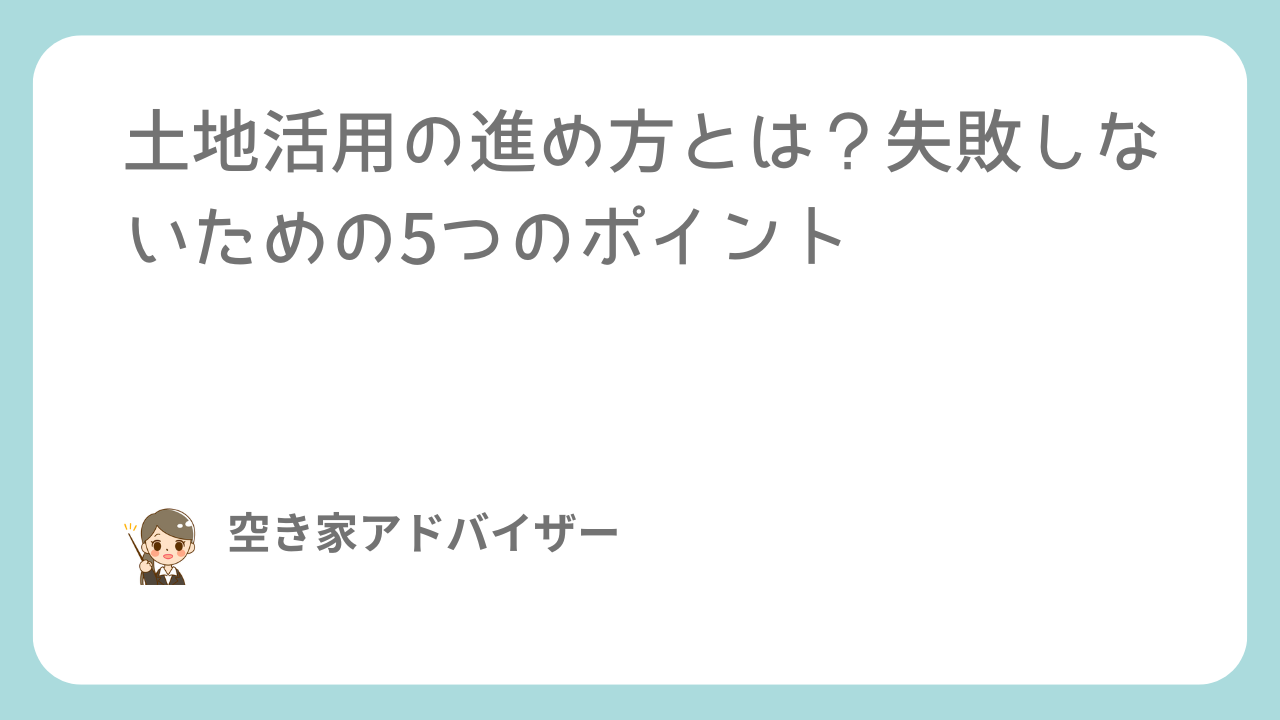土地を上手に活用するためには、計画的かつ段階を踏んで進めることがとても重要です。