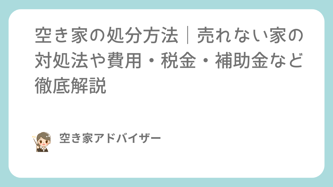 売却できない場合の対処法や、空き家の処分に活用できる補助金制度、知っておきたい税金に関する情報も網羅しました。